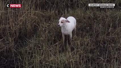 Il fallait sauver la chienne par les airs : les sauveteurs ont donc eu l’idée d’attacher une saucisse à leur drone pour attirer l’animal vers une zone plus sécurisée.