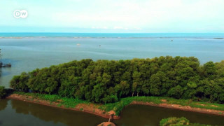 Wo auf der indonesischen Insel Java einst dichte Mangrovenwälder wuchsen, reihen sich heute Teichanlagen für die Garnelenzucht aneinander. Mit fatalen Folgen. Ohne Mangroven zerstört das Meer die Küste. Doch es gibt ein Umdenken.