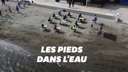 Après une année d’apprentissage à distance et de classes en distanciation sociale, cette école de la région espagnole de Murcie a décidé de faire cours dehors, sur la plage de Los Nietos.