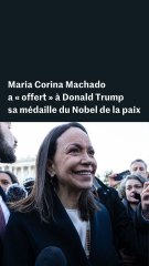 L’opposante vénézuélienne Maria Corina Machado a dit, jeudi 15 janvier, avoir « offert » à Donald Trump la médaille de son prix Nobel de la paix, alors que le président américain la tient à l’écart de sa stratégie pour le Venezuela.