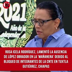 Rosa Icela Rodríguez, titular de la SSPC, lamentó la ausencia de López Obrador en la ‘mañanera’ debido al bloqueo de integrantes de la CNTE en Tuxtla Gutiérrez, Chiapas. Sostuvo que “el Gobierno de la 4T ha mantenido una postura permanente de apoyo al diálogo”.