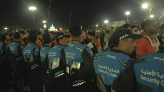 Al Khor (Qatar) (AFP) – Police outside Al Bayt Stadium form a safety perimeter to regulate the flow of Morocco fans arriving at the stadium for the World Cup semi-final between France and Morocco.
