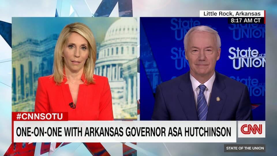 Arkansas Gov. Asa Hutchinson (R) tells CNN's Dana Bash his state is not headed towards a third surge despite a lagging vaccination rate and the onset of the Delta variant of Covid-19.