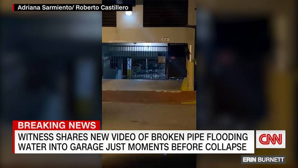 Adriana Sarmiento and Roberto Castillero were staying at a nearby hotel when they recorded video of debris and water gushing into the underground parking garage of the Champlain Towers South, moments before a portion of the building collapsed. CNN's Boris Sanchez has more.