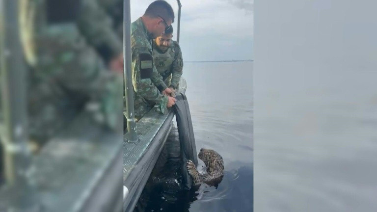 Jaguar with gunshot wounds rescued from river in Brazil