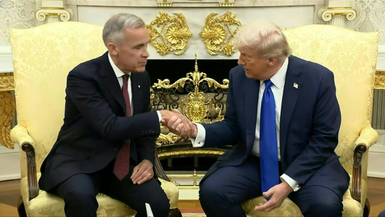 Washington (AFP) – US President Donald Trump strikes a friendly tone with Canadian Prime Minister Mark Carney, calling him a “world-class leader” during a press conference at the White House in which Trump hailed progress towards a trade deal. The warm words come despite Trump having made repeated threats early in his second term to make Canada a “51st state” of the US, which revived the electoral fortunes of Carney, who campaigned on his extensive crisis management experience as a way of countering Trump’s tariffs and annexation threats. Canada’s opposition heaped pressure on Carney ahead of the visit, as the country is the last major US ally not to seal a deal with Washington.