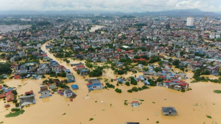 Submerged streets in north Vietnam as thousands stranded after record flooding